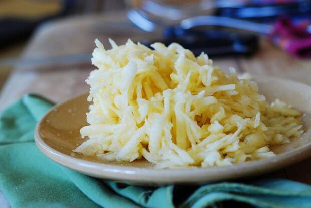 Приготовление панкейков не займет много времени. Смешайте яйцо с йогуртом в большой миске. В небольшую миску просейте муку, разрыхлитель, соль и сахар. Соедините влажные и сухие ингредиенты. Теперь займитесь яблоками: очистите их от кожуры и натрите на крупной терке. Затем добавьте яблоки к остальным ингредиентам и тщательно размешайте.