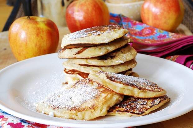 Похоже на яблочные блинчики? Да, но не совсем, ведь здесь есть небольшой секрет в виде ванили и корицы, что делает эти панкейки удивительно ароматными.